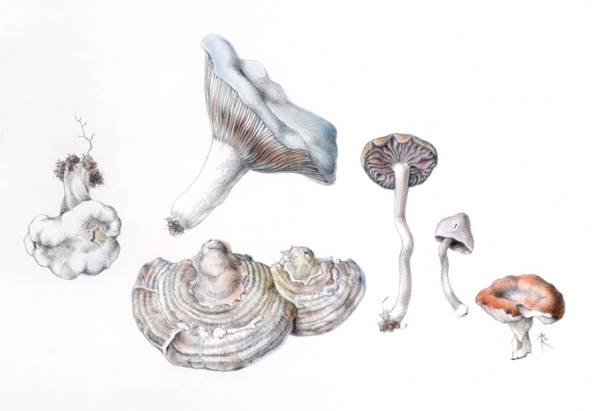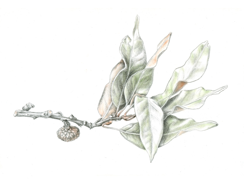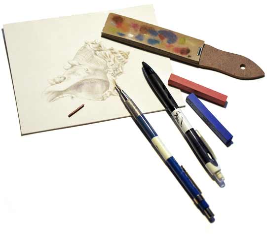 The way I use color in a silver point drawing is a little different than in a graphite drawing. I use pastel dust. I will scrape off a little of the pastel color onto a sand paper block. When I have a fair amount of dust collected I load the dust on an inexpensive and fairly stiffly brush. I apply the dust to the drawing with the brush, building it up until I have the intensity of color I want.